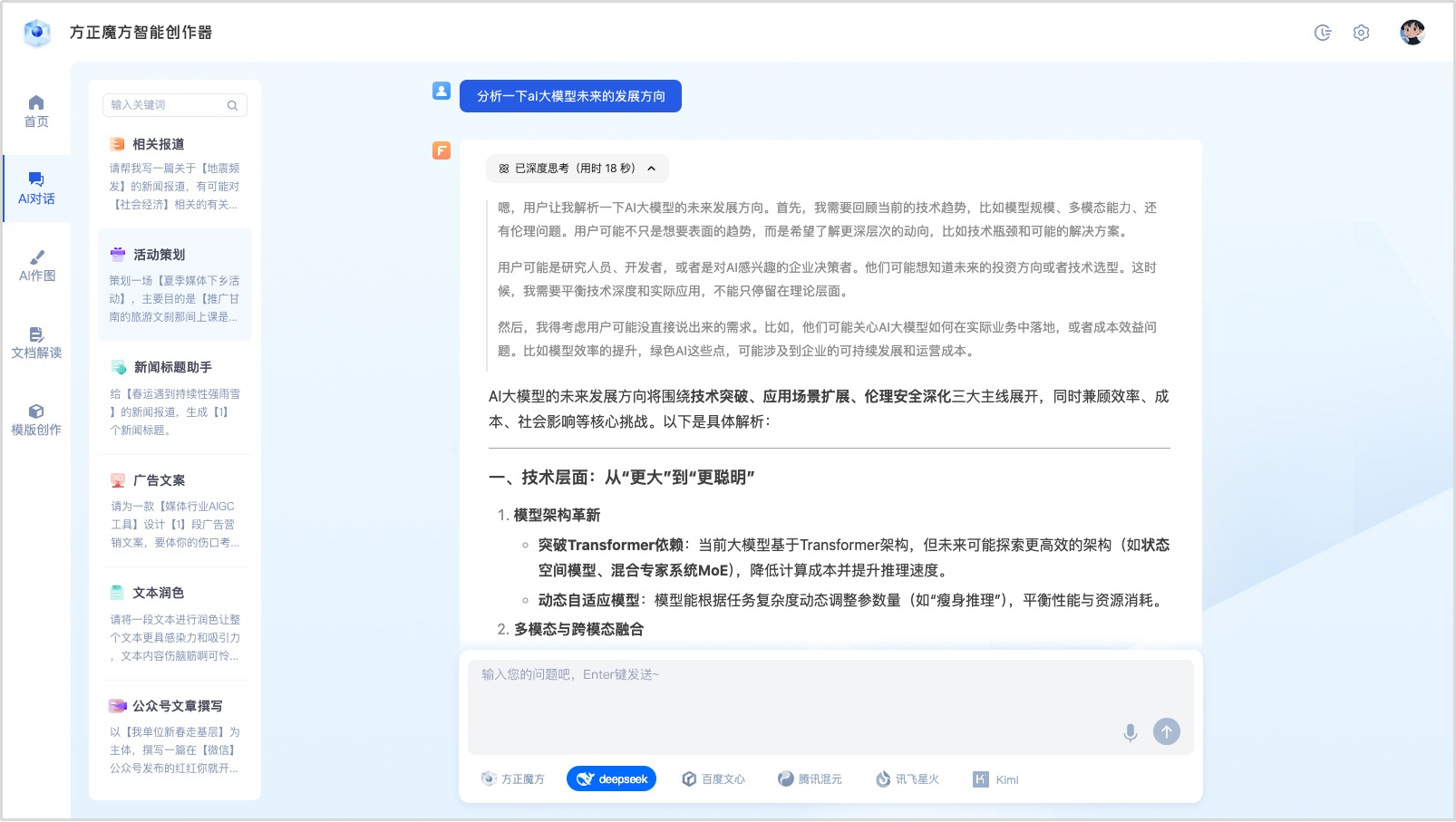 AI新動(dòng)作|方正電子接入DeepSeek模型,賦能媒體和學(xué)術(shù)出版行業(yè)智能化新發(fā)展!